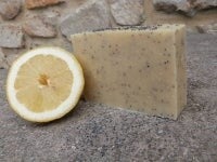 Fris geurende scrubzeep met maanzaad en etherische olie van citroen, litsea cubeba en tea tree.